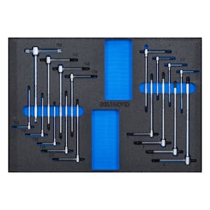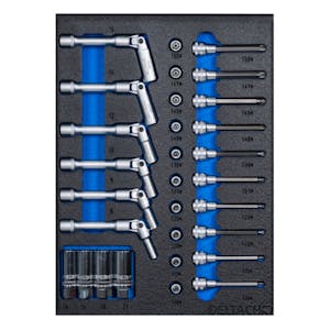 Een belangrijk onderdeel van een gereedschapskist of gereedschapswagen is de foam lade. In deze lade is een stuk schuim gelegd met de juiste uitsneden voor uw gereedschap. Het gereedschap past dus perfect in de inlage en raakt elkaar daarbij niet. Zo weet u dus zeker dat het gereedschap niet overhoop raakt en niet beschadigt.