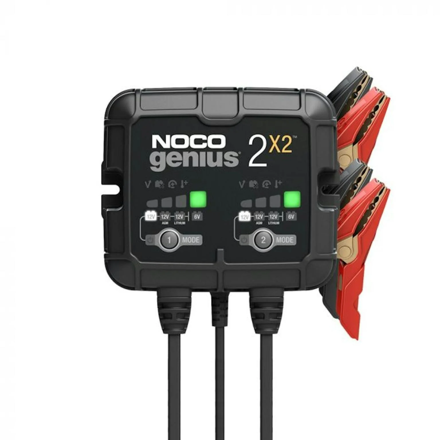 Multibank acculader, 2x 2 ampere, voor kleine startaccu's tot 40 Ah, zoals motorfietsen en andere kleine voertuigen. Geschikt om alle 6 en 12 V accu's te laden. De Genius2x2 kan compleet lege accu's opladen door de Force-modus. Door de ingebouwde desulfatiemodus en het 9-staps laadalgoritme kan de lader gecorrodeerde accu's automatisch repareren. De geïntegreerde thermische sensor past het laadprofiel automatisch aan de hand van de omgevingstemperatuur. Met deze acculader kun je alle accu's tot 40 Ah zorgeloos laden en kun je 24/7 de lader aan de accu laten zonder dat deze overbelast raakt. Wordt geleverd inclusief 2 accuklemmen met geïntegreerde M6 oogjes, 2x 3 meter lange connectorkabels, 230 V stroomkabel en 2 zelftappende schroeven voor montage.