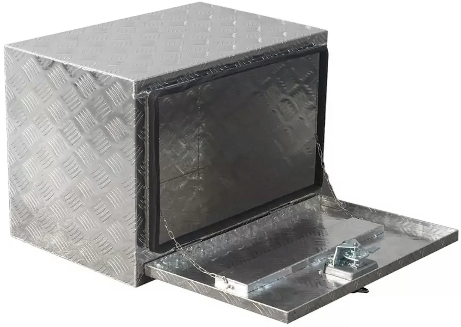 Aluminium opbergkist 610 x 430 x 455 mm met inhoud 120 liter voor de opslag en vervoer van gereedschappen en materialen.