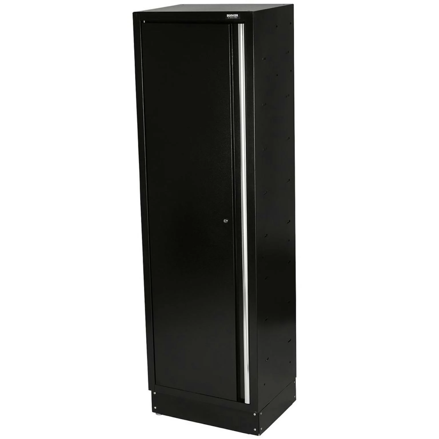 Onderdeel van het BUNKER® modulaire opbergsysteem. Deze verbluffend ontworpen hoge stalen kast van topkwaliteit heeft een enkele deur voor gemakkelijke toegang. Binnenin bevinden zich vier volledig verstelbare planken om ongelooflijk veelzijdige opbergruimte te creëren. De poten van de kast zijn verstelbaar voor een optimale positionering op een ongelijke vloer. De matzwarte structuurafwerking van de kast is zeer duurzaam dankzij de industriële poedercoating die beschermt tegen krassen, slijtage en corrosie. Er is een integraal slot voor beveiliging en er worden twee sleutels meegeleverd. De kast dient gemonteerd te worden en heeft de afmetingen B 600 x H 2.000 x D 458 mm. Het kan worden gebruikt als een individuele opbergkast of als onderdeel van het BUNKER® modulaire opbergsysteem, dat 24 slimme modulaire opties omvat. Het wordt geleverd met alle benodigde fittingen voor een eenvoudige installatie. Voor uw kwaliteitsborging hebben alle BUNKER®-units een garantie van 10 jaar.