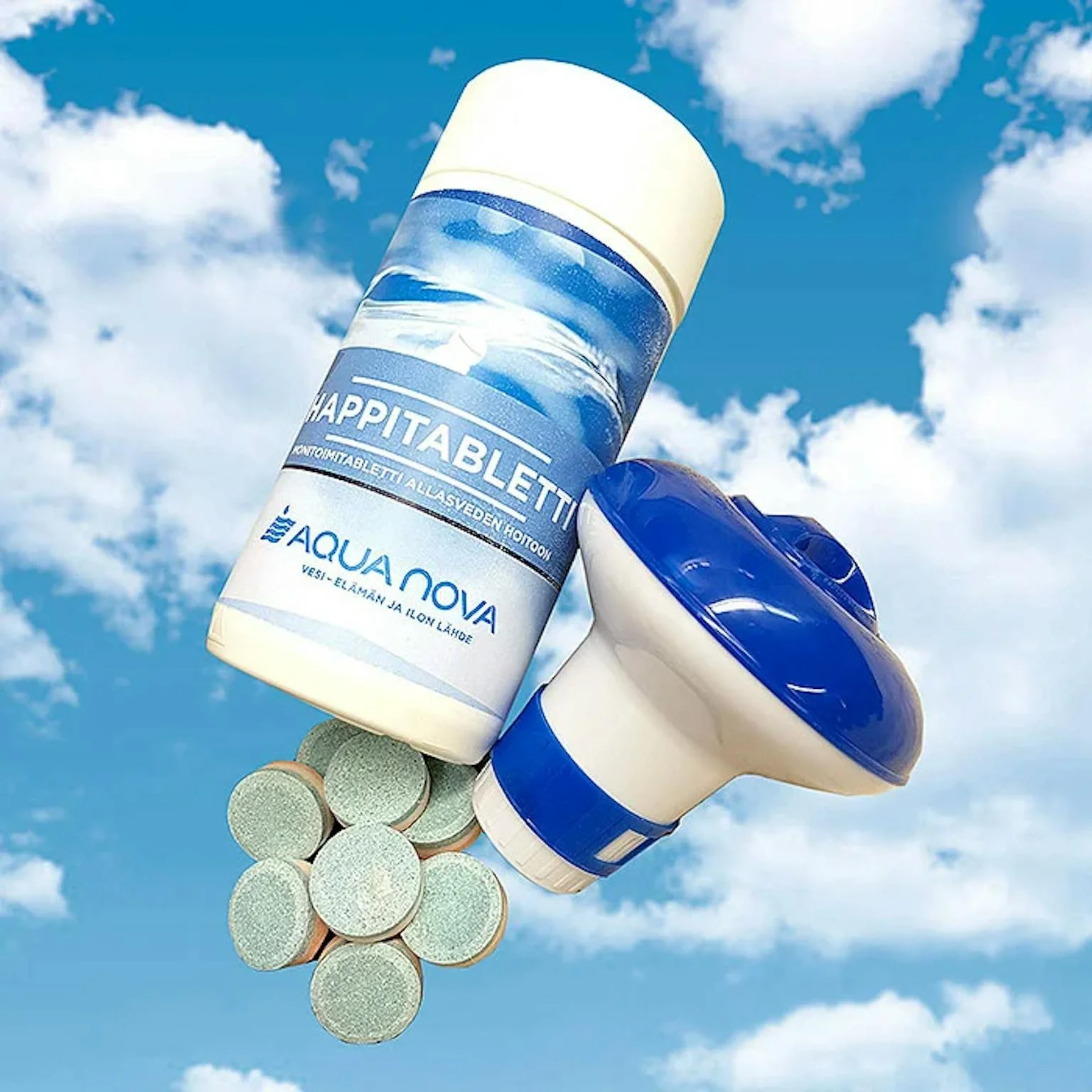 Ervaar de perfecte harmonie van reinheid en ontspanning met zuurstoftabletten met drijver. Onze innovatieve waterbehandelingsoplossing bevat 50 zuurstoftabletten, elk met een gewicht van 20 g, en een automatische tabletdispenser, die een chloorvrije en probleemloze benadering biedt om het zuivere water van jouw hottub te behouden.