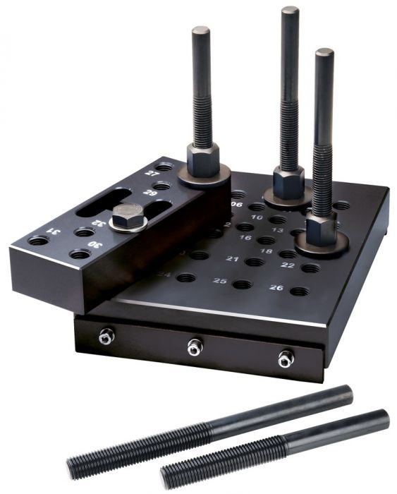 Elektrohydraulische werkplaatspers met verplaatsbare, dubbelwerkende cilinder, volledig gelast frame, verchroomde piston en 2 V-blokken. Dankzij de 90 graden scharnierende pomp is de pers ook te gebruiken bij lange werkstukken. De perstafelhoogte kan snel en veilig aangepast worden d.m.v. een lier.