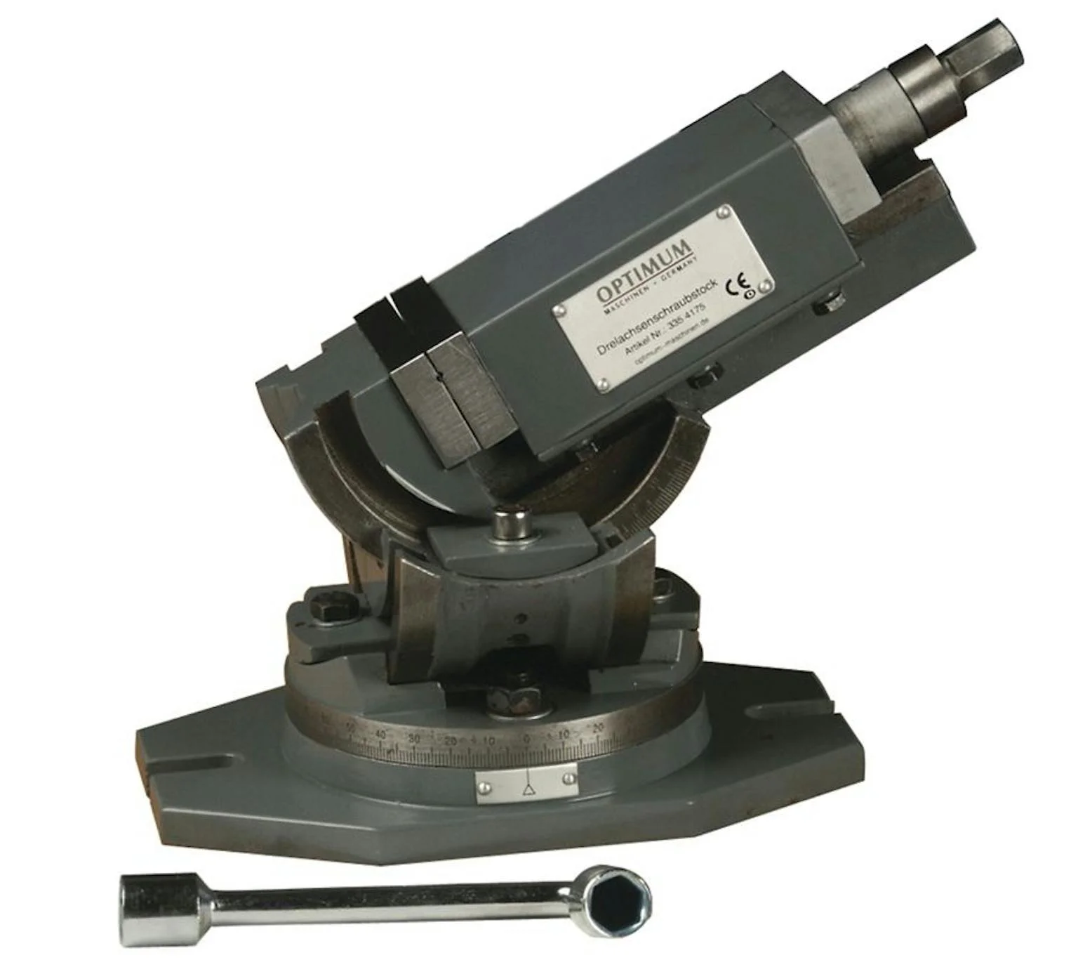 Drie-assige mechanische freesklem.TroevenUit hoogwaardig gietijzerVerticaal als horizontaal kantelbaar tot 90°360° draaibaar op draaitafel en +/-45° verticale zwenkbeweging over de spindelGeharde en geslepen bekkenAfleesschalen op alle 3 assenGeschikt voor:Het positioneren van uw werkstuk onder een...