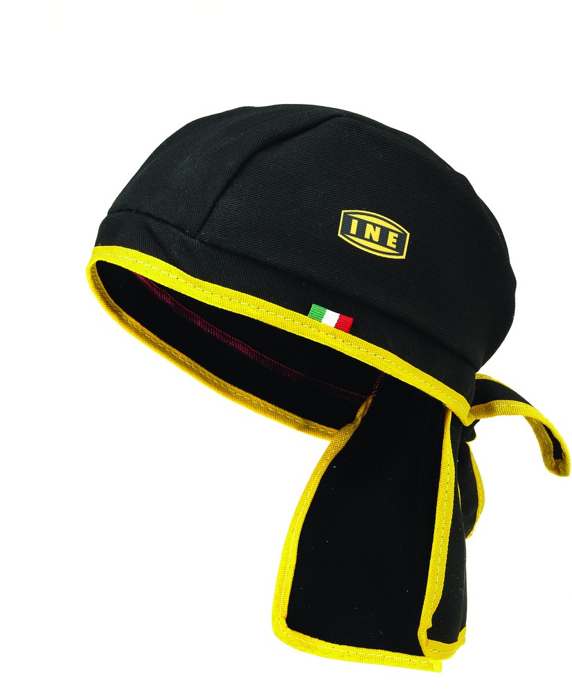 Zorgt voor bescherming van het hoofd en is gemaakt van brandvertragend katoen.