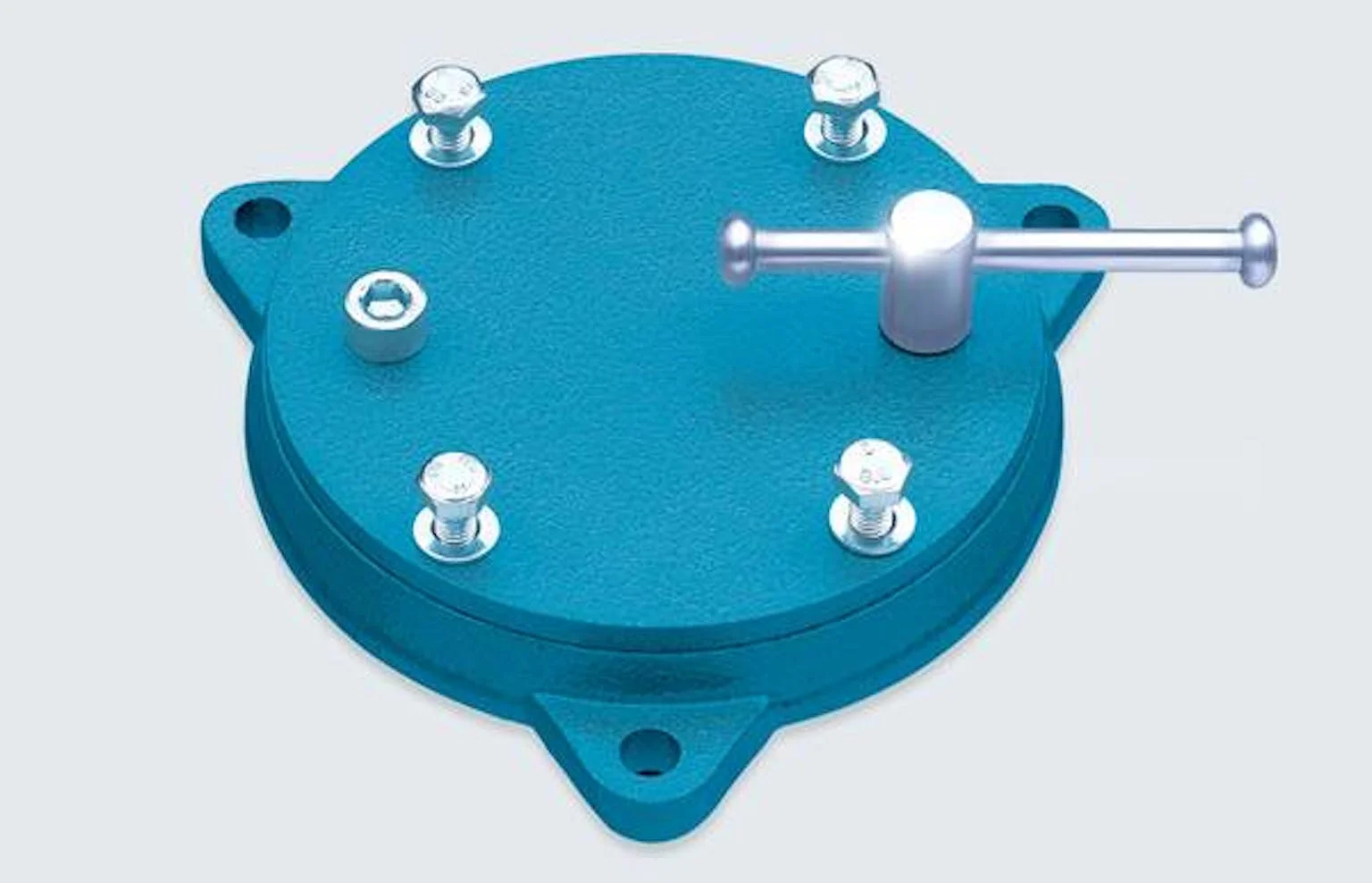Met behulp van het HEUER draaiplateau kan de bankschroef, op gelijkblijvende hoogte, 360° worden gedraaid. Precies in de positie die u nodig heeft om het werkstuk te bewerken. Door het aandraaien van de kleine zwengel wordt het draaiplateau, en daarmee ook de bankschroef, op een veilige manier en precies in de gewenste positie vergrendeld.