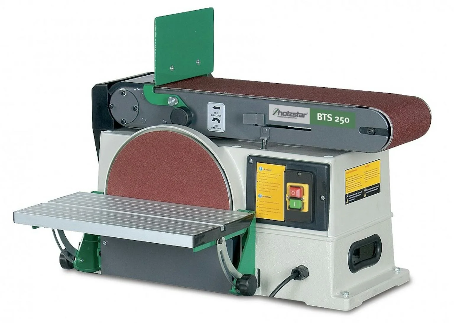 Universele band- en schijfschuurmachine. Voor ontbramen, afvlakken, en slijpen.