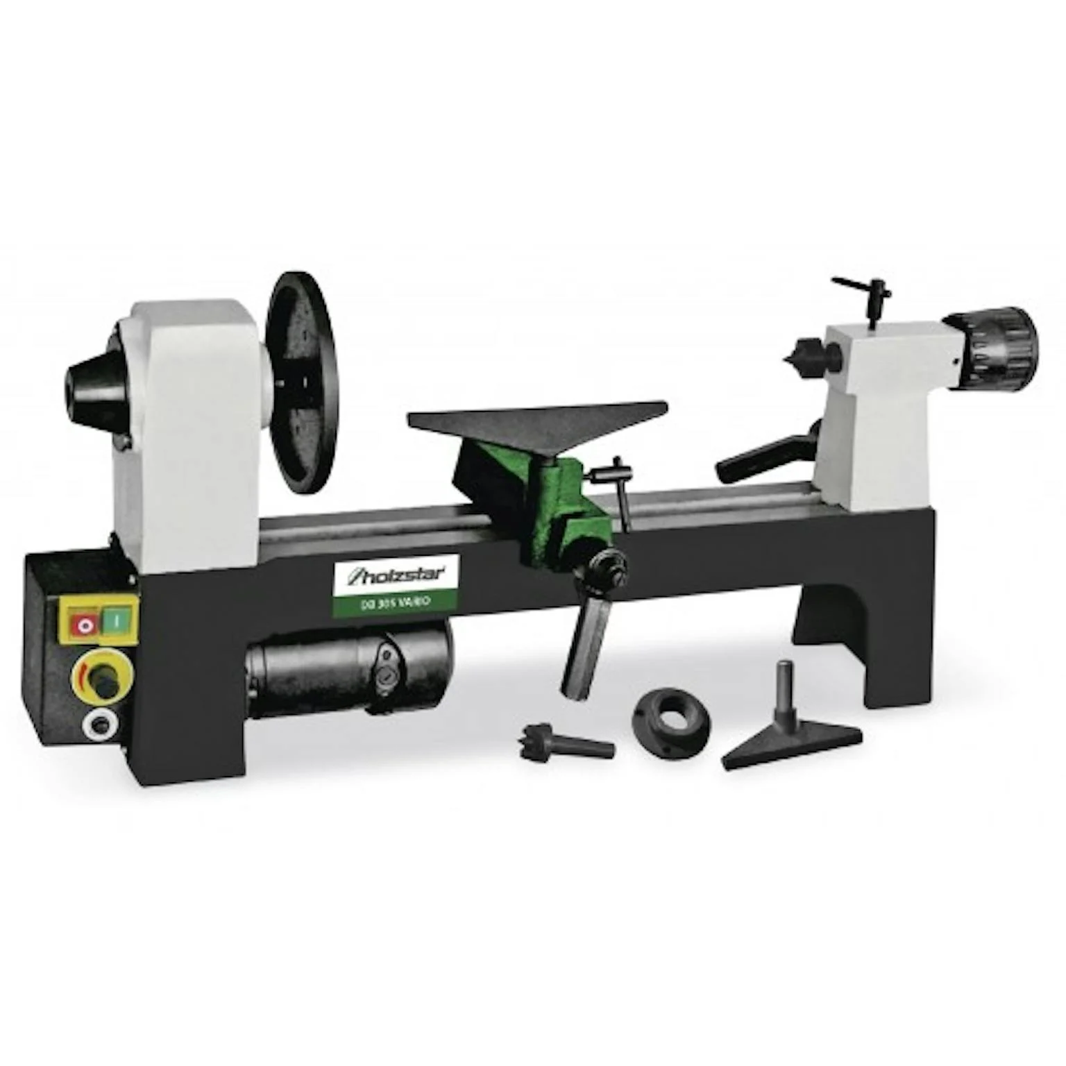 Compacte houtdraaibank met continue variabele snelheden.