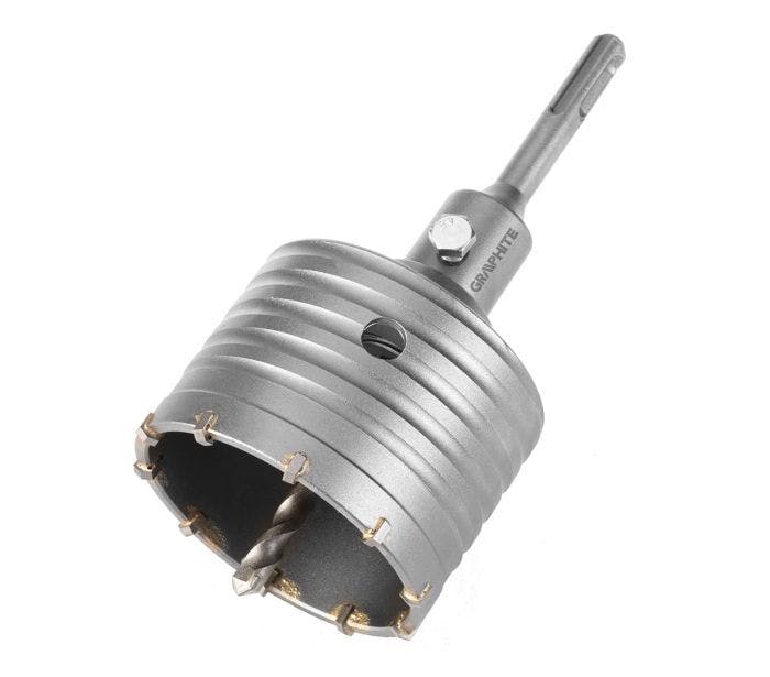 Een 80 mm Widia-gatzaag met een SDS+ adapter en een 55H322 GRAPHITE centreerboor is een betrouwbaar gereedschap dat in veel toepassingen zal werken. Uitgerust met hardmetalen bladen is deze gatenzaag ideaal voor het boren van gaten in beton en baksteen. Het universele gebruik ervan omvat ook de mogelijkheid om gaten te maken voor installatiedozen in wanden gemaakt van deze materialen. Een uiterst belangrijk kenmerk van deze GRAPHITE-gatzaag is de mogelijkheid om met een hamer te boren, waardoor het werken op moeilijkere oppervlakken veel gemakkelijker en effectiever wordt. Zaagbladen van fijnkorrelig gesinterd hardmetaal zorgen voor een verhoogde slijtvastheid, wat zich vertaalt in een langere levensduur van de gatenzaag. Daarnaast is de gatenzaag voorzien van een SDS+ adapter en een centreerboor, wat het boorproces vergemakkelijkt en versnelt. De totale lengte van de set bedraagt 163 mm, waardoor het een praktisch en handig hulpmiddel is voor bouwvakkers, doe-het-zelvers en elektriciens. Dit is een onvervangbaar gereedschap waarmee u nauwkeurige gaten in verschillende materialen kunt maken.