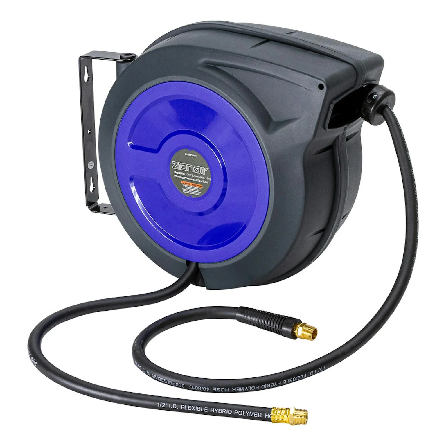 Deze duurzame Zionair muurhaspel met ABS kunststofbehuizing is makkelijk in gebruik. De slang is op verschillende lengtes instelbaar en rolt dankzij het slanggeleiding systeem netjes automatisch op. De haspel is 180 graden zwenkbaar en is door zijn automatische rem extra veilig in gebruik.