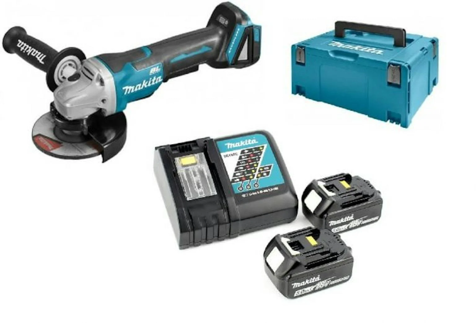 Makita DGA505RTJ 18V Li-Ion accu haakse slijper koolborstelloos set (2x 5.0Ah accu) in Mbox