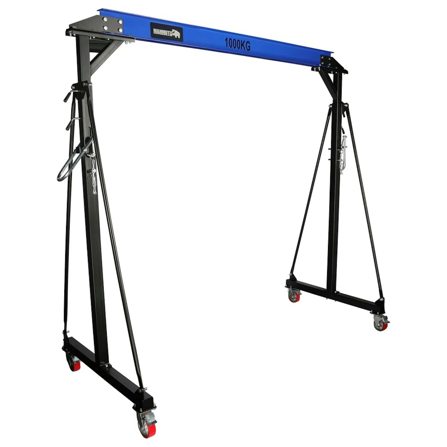 De Mammuth verrijdbare portaalkraan is geschikt voor het tillen en ondersteunen van lasten tot 1000 kg. Dankzij de verstelbare hoogte en brede doorgang is dit hulpmiddel veelzijdig inzetbaar in garages, werkplaatsen en industriële omgevingen.