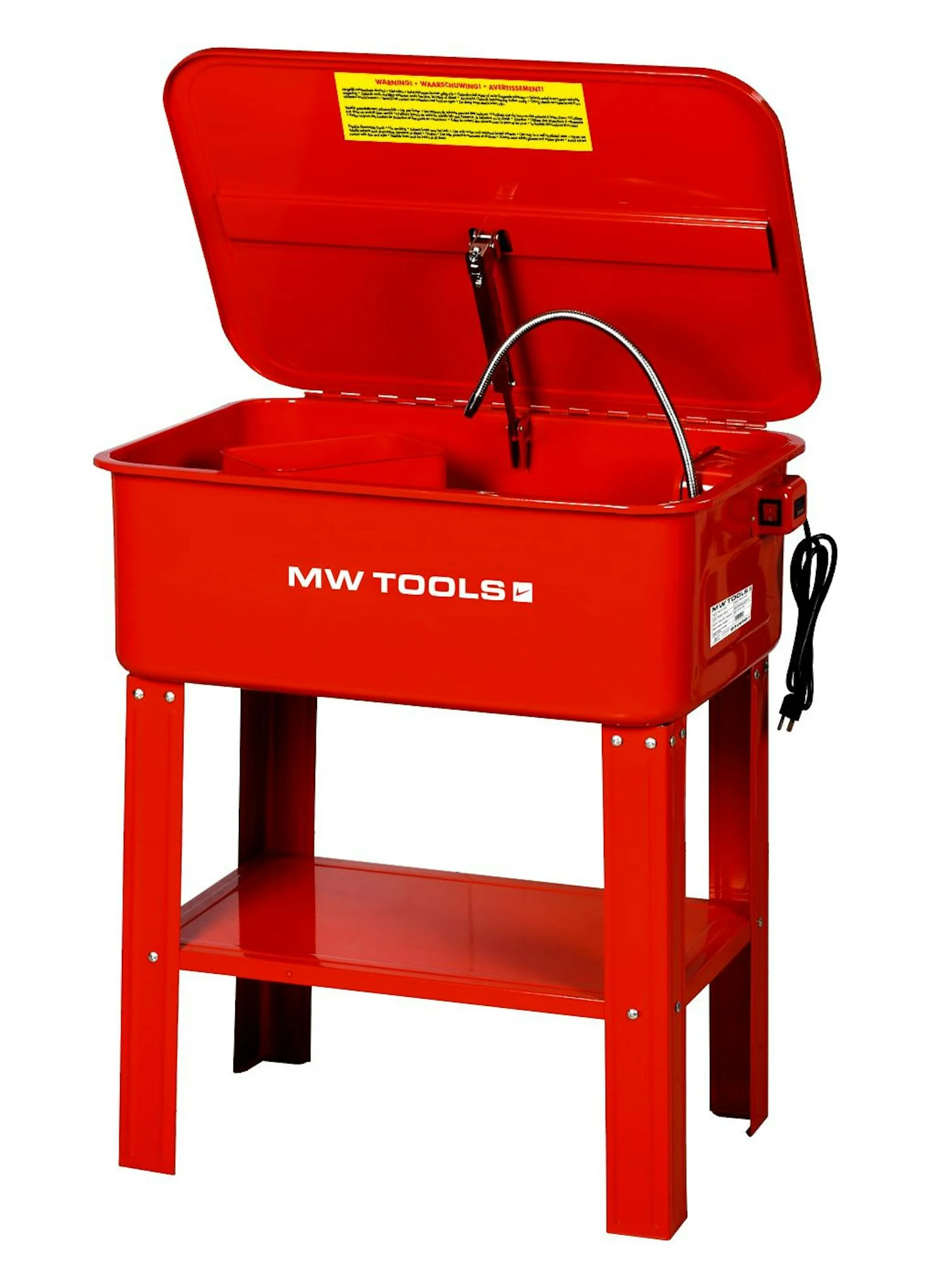 Voetmodel met een inhoud van 75lt De ontvetter circuleert in de reiniger tot deze wordt afgelaten via de aflaatstop Met smeltveiligheid tegen ontbranding in de reiniger