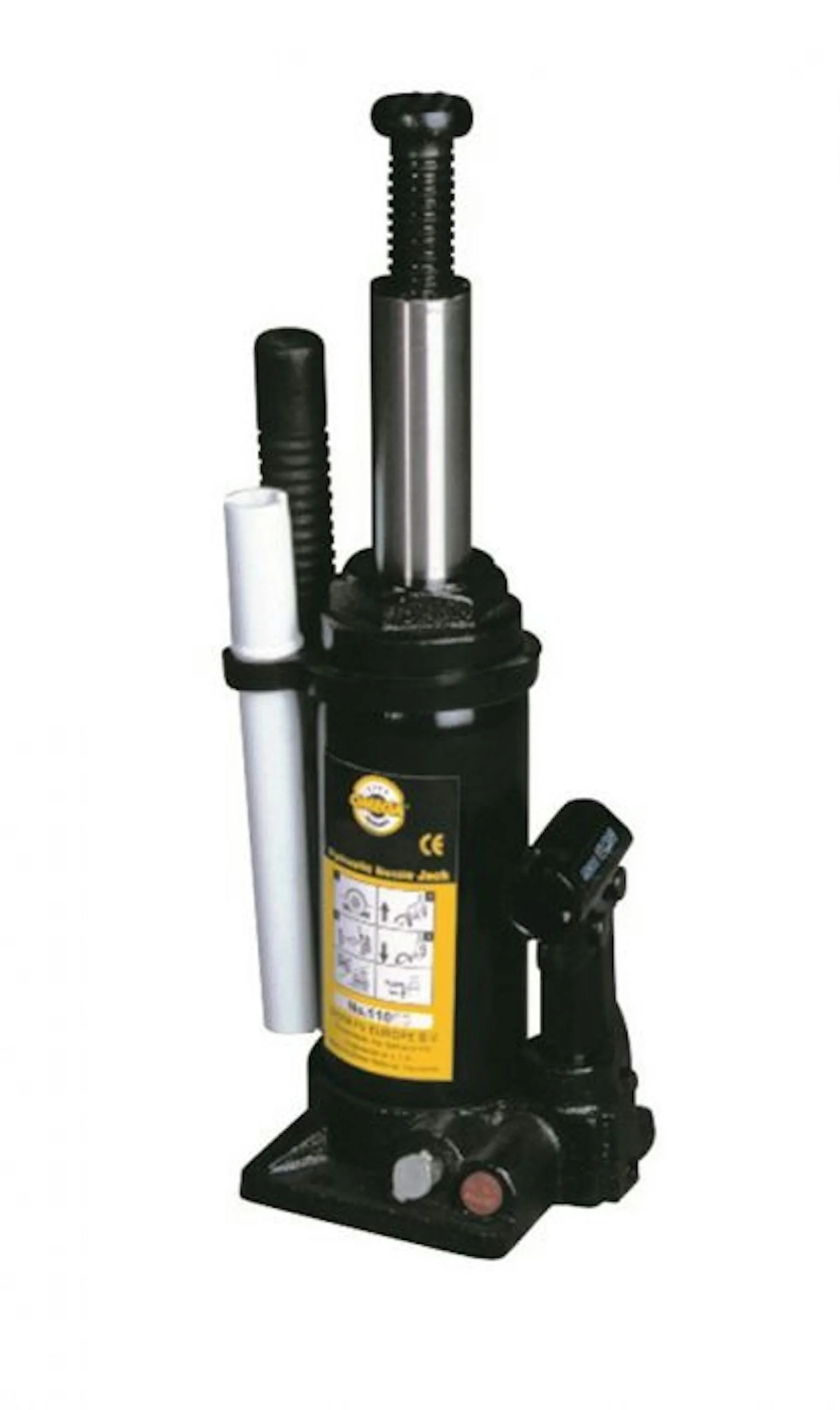 Hydraulische potkrik van edelstaal met bypass mechanisme en lekvrije cilinder voor professioneel gebruik.