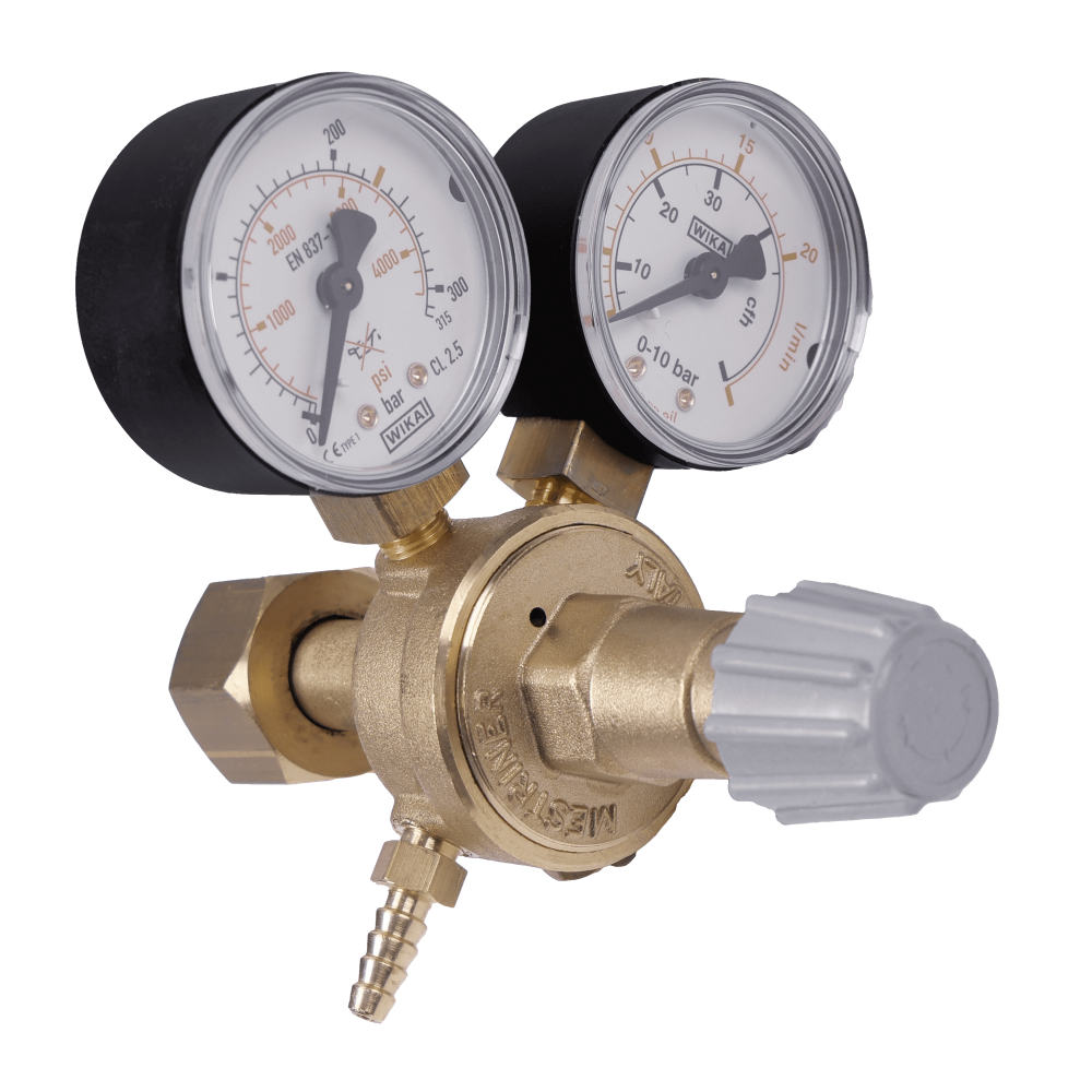 Het reduceerventiel is voorzien van 2 manometers en de gastroom is zeer nauwkeurig te regelen en af te lezen met een nauwkeurigheid van 0-20L/min.