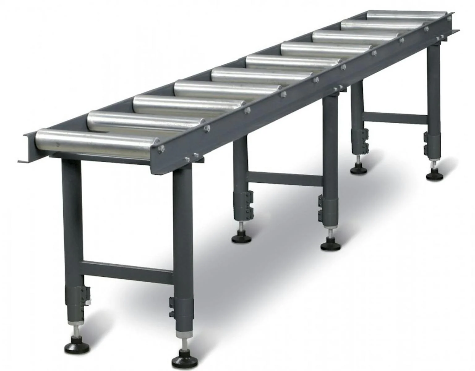 Rollenbanen in de hoogte verstelbaar, lengte 3.000 mm.