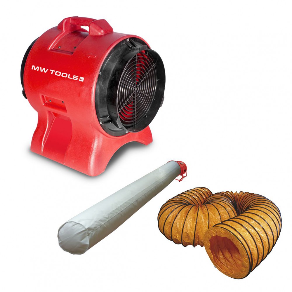 Set bestaande uit mobiele ventilator MV300PP + afvoerslang MV300SL + filterzak MV300FZ.
