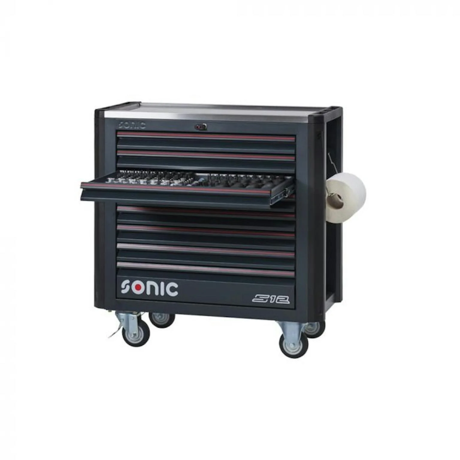 De NEXT S12 is een gereedschapswagen die verbeterd is tot in elk detail. De gereedschapswagen met 8 laden, waarvan 7 gevuld met een 485-delig gereedschapsassortiment, heeft een premium poedercoating en is voorzien van stijlvolle kunststof bumpers en afgewerkt met een nieuw ontworpen werkblad.