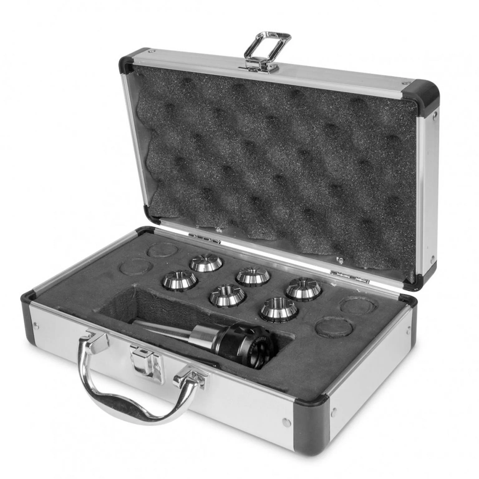 Koffer met ER spantanghouder, spantangen DIN6499 en haakse sleutel.