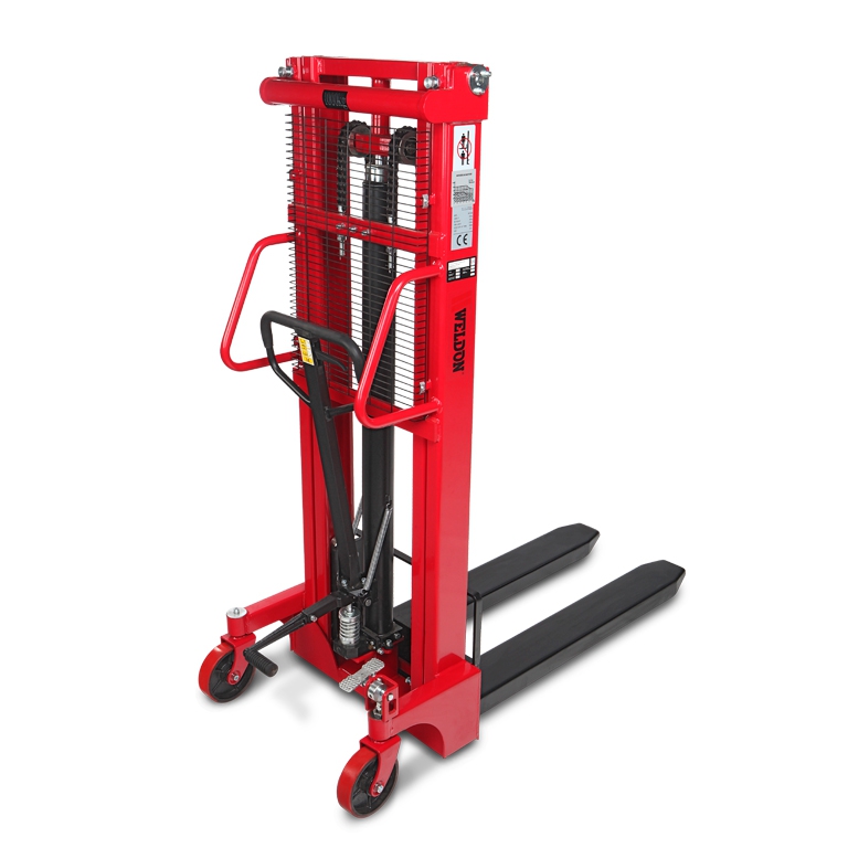 De manuele stapelaar 2,5m van Weldon is zeer geschikt voor het verplaatsen en heffen van uiteenlopende lasten tot 1000KG. De machine is zeer wendbaar en voorzien van veel veiligheidsfuncties. De gebruiker wordt beschermd doordat de machine is voorzien van een veiligheidsrooster. Met de ergonomische hendel is bediening eenvoudig en verantwoord. De dubbele mast heeft een groter hefbereik en een lagere doorrijhoogte. Het onderhoudsarme hydraulische systeem staat garant voor een lange levensduur.