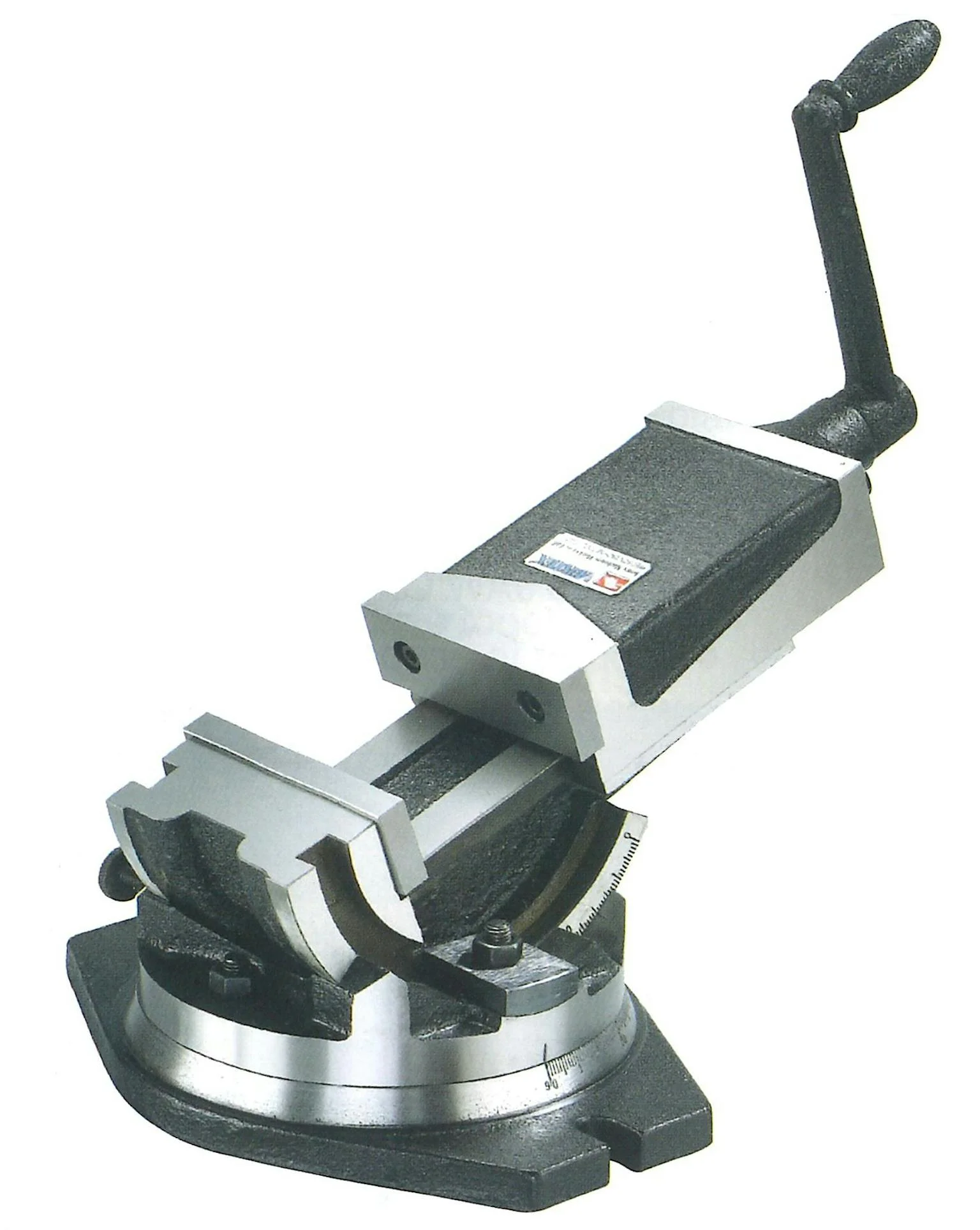 Zeer grote uitlading door snel verstelling van de losse bek Machineklem 2 weg verstelbaar, 360° draaibaar, 0-90° vertikaal en horizontaal kantelbaar Zware gietijzeren structuur Geharde en geslepen geleidingen en bekken Buigbestendig