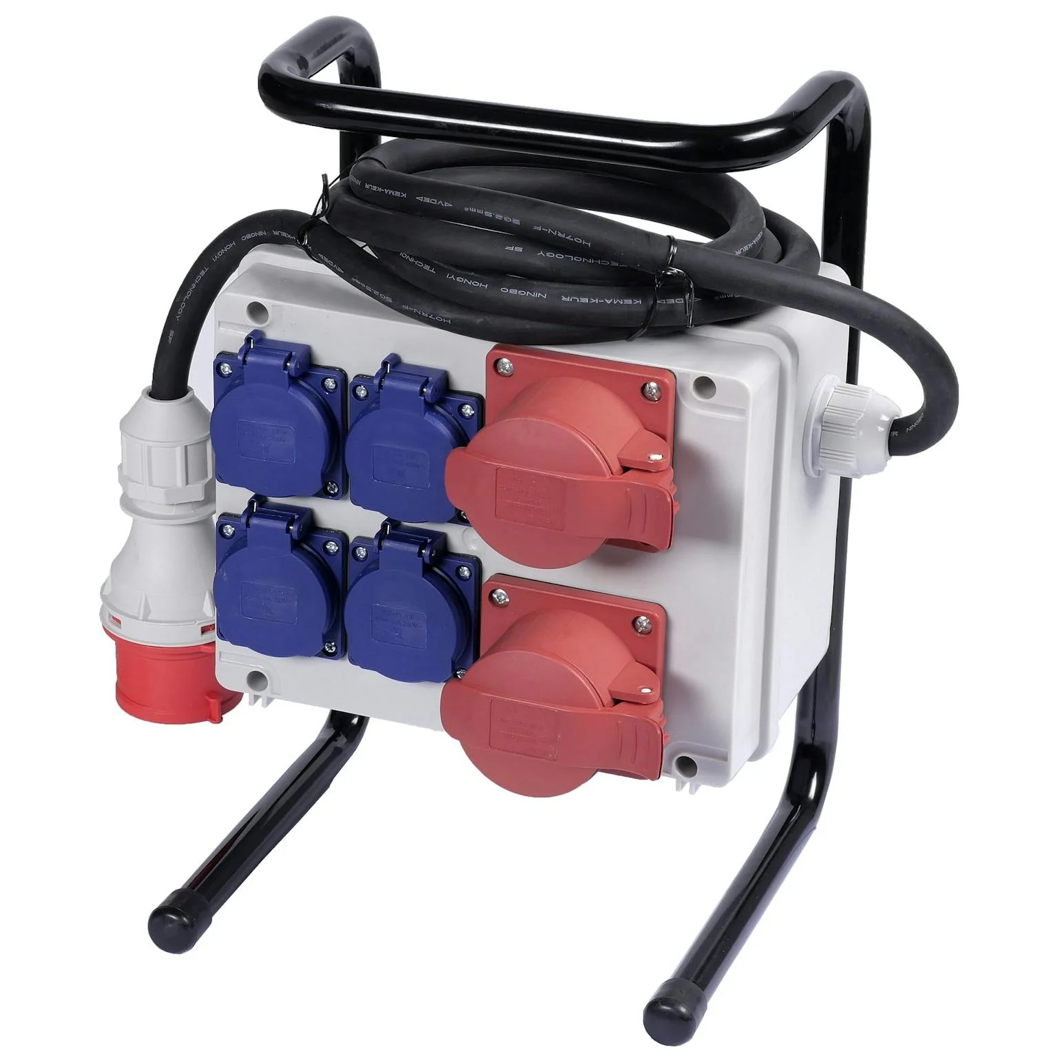 De VDD416 is een robuuste, staande verdeeldoos met 2x CEE 5-polig 16A en 4x geaarde stopcontacten. Dankzij de IP44-bescherming is hij perfect voor gebruik in werkplaatsen, op de bouwplaats of bij evenementen – zowel binnen als buiten. Voorzien van een 2 meter neopreen voedingskabel met CEE-stekker, dus direct inzetbaar.