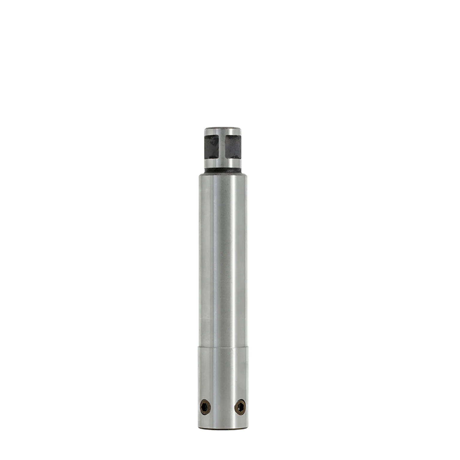 Doordat de diameter van deze assen kleiner is dan 26mm, kun je ze door gaten van minimaal 26mm gebruiken om bij je werkstuk te komen. De verlengassen zijn voorzien van een in- en uitwendige Weldon aansluiting (19,05 mm) en verkrijgbaar in de lengtes 100 mm, 150 mm en 200 mm. Ondanks zijn slanke formaat maakt deze verleng-as gebruik van een centreerpen mogelijk voor het positioneren van de boor en het uitwerpen van de prop.