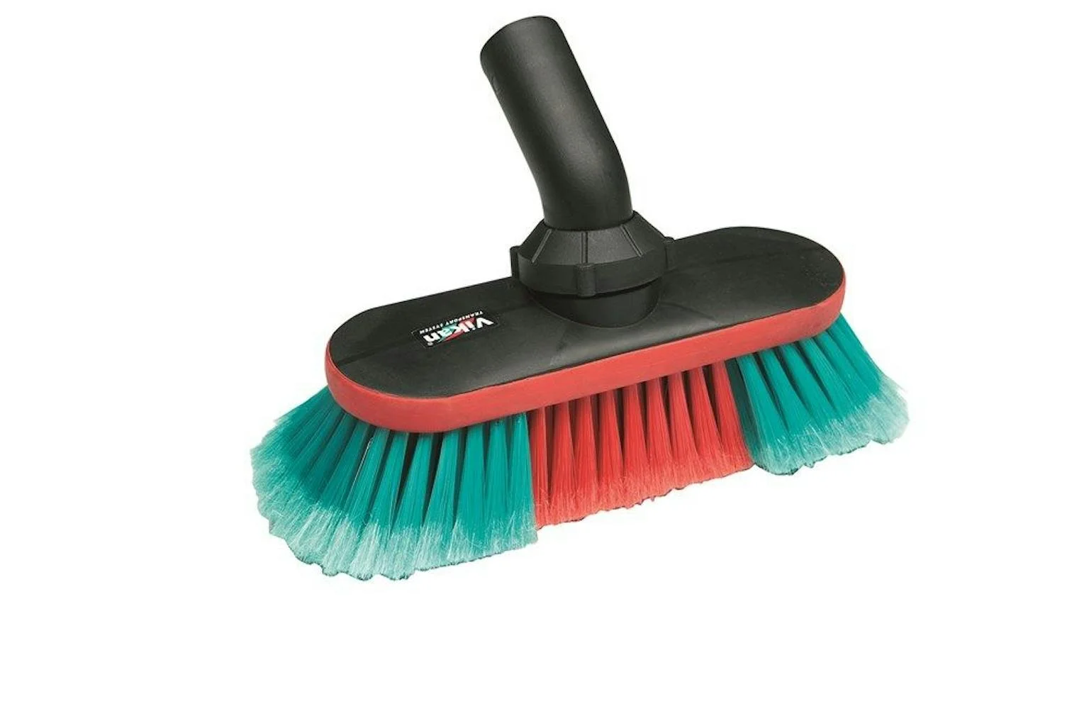Wasborstel met schuingeplaatste vezels, verstelbare steelaansluiting en waterdoorvoer.