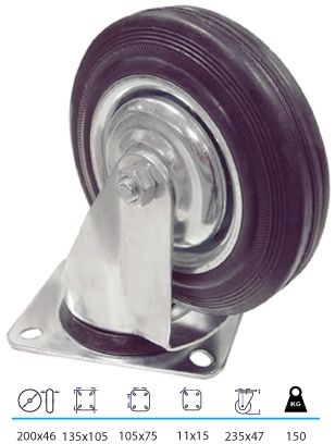 Zwenkwiel metaal rond 200mm