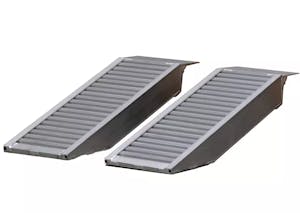 Het overgrote deel van de oprijplaten uit ons assortiment zijn vervaardigd uit aluminium. Dit heeft als grote voordeel dat ze zeer licht van gewicht zijn. Hierdoor zijn ze zonder al teveel fysieke inspanning eenvoudig mee te nemen. Aluminium heeft daarnaast als voordeel dat het een heel sterk materiaal is. Bij elk type oprijplaat staat duidelijk aangegeven met welk maximaal gewicht de platen te belasten zijn. Je begrijpt dat het uitermate belangrijk is om deze maximale belastbaarheid niet te overschrijden.