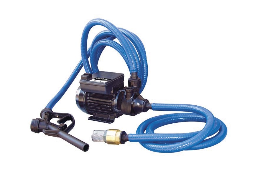 Een krachtige pomp voor diesel en huisbrandolie. Hij heeft een sterk gietijzeren pomphuis en wordt geleverd met een complete set slangen, pistool en filter.