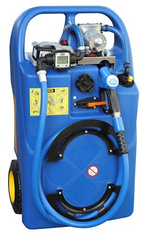 De mobiele AdBlue®-tank (110 liter) is voorzien van een duurzame pomp, 3 meter slang en handpistool – perfect voor voertuigen met SCR-technologie. De tank is licht van gewicht, bestand tegen vorst en eenvoudig te verplaatsen dankzij de geïntegreerde wielen.