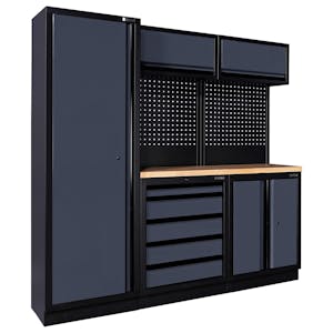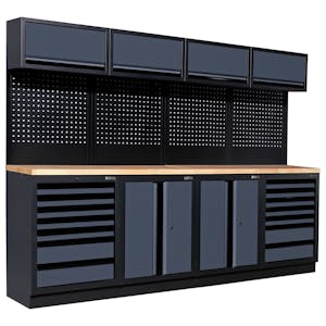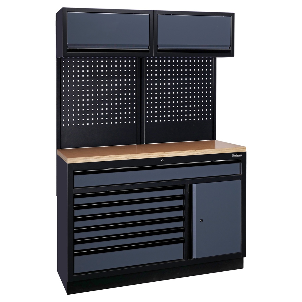 De veelzijdigheid van Bullram-modules komt het beste tot zijn recht als je kijkt naar de talloze combinaties die je kunt maken. Afhankelijk van je behoefte kun je kiezen voor een samenstelling met opbergkasten, gereedschapswanden, open vakken of zelfs verrijdbare modules.