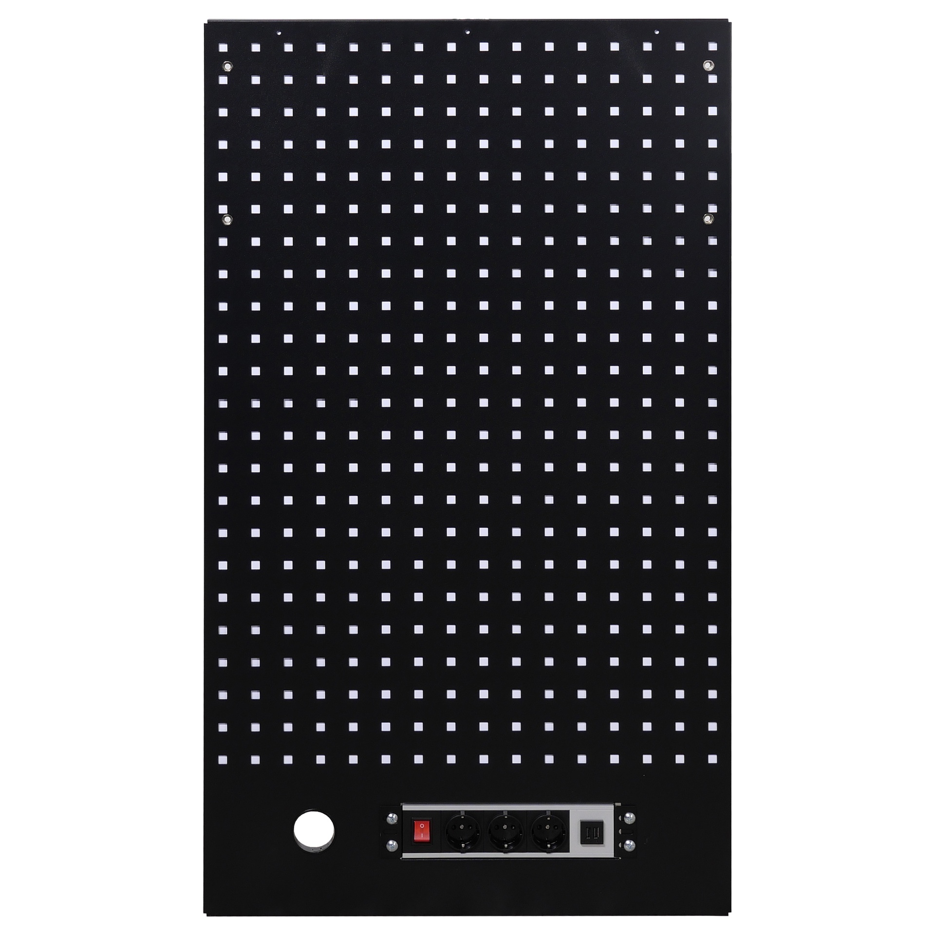 - Opzetwand met geperforeerde achterplaat voor haken en houders
